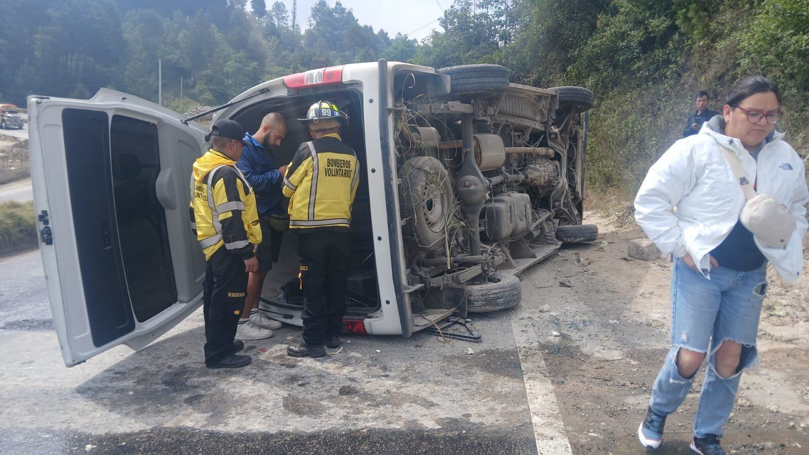 En ese sector un microbús volcó aparatosamente sobre la cinta asfáltica, en dicho automotor viajaba un grupo de turistas proveniente de Chiapas, México con destino a Antigua Guatemala, Sacatepéquez.
