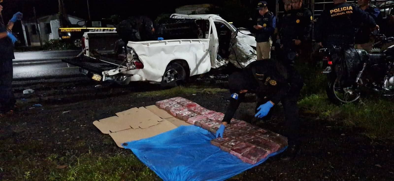 La Policía Nacional Civil (PNC) informó que la noche del sábado 7 de junio en el km. 136 de la ruta CA-2 jurisdicción de Nahualate, Suchitepéquez, agentes de la comisaría 33 atendieron un hecho de tránsito donde estaba involucrado un camión de transporte pesado y un picop.