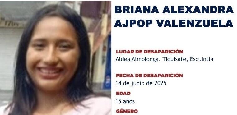 El pasado 14 de junio se emitió una alerta Alba Keneth de una joven que fue reportada como desaparecida en Aldea Almolonga, en Tiquisate, Escuintla. Horas más tardes, Briana Alexandra Ajpop García, de 15 años, publicó un video en donde manifestó que está bien y que no piensa regresar.