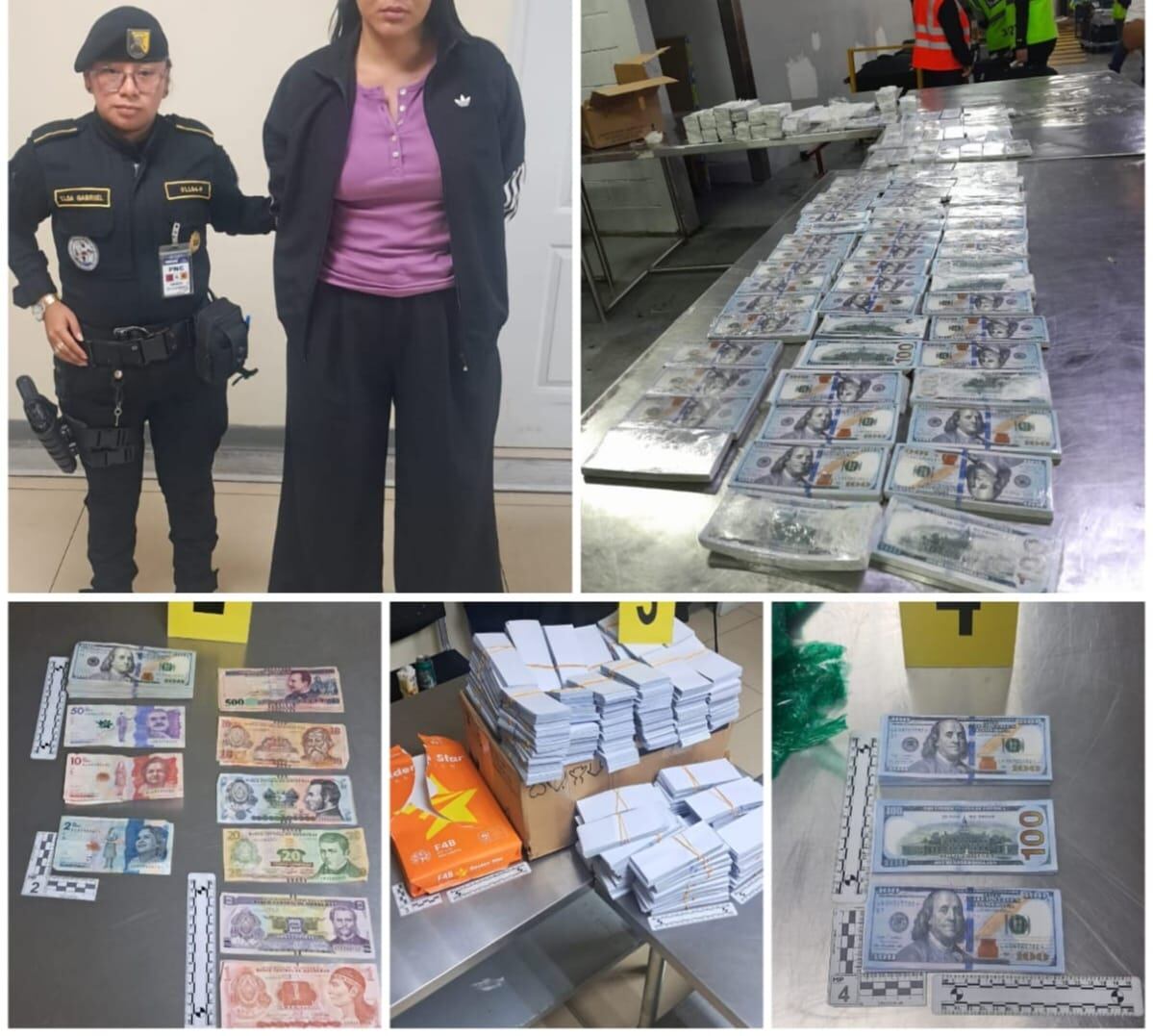 La mujer llevaba el dinero en el equipaje de mano y en el que transportaba en bodega, se localizaron varios paquetes que simulaban ser dólares.