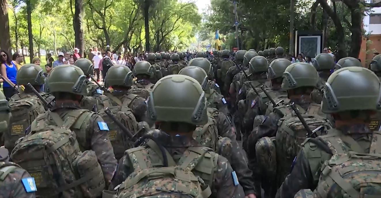 Decenas de soldados participaron este lunes 30 de junio en el tradicional desfile militar para celebrar el Día del Ejército en Guatemala. La marcha de los militares comenzó en el monumento a Juan Pablo II y finalizó en el Ministerio de la Defensa Nacional (Mindef) y el Campo Marte.