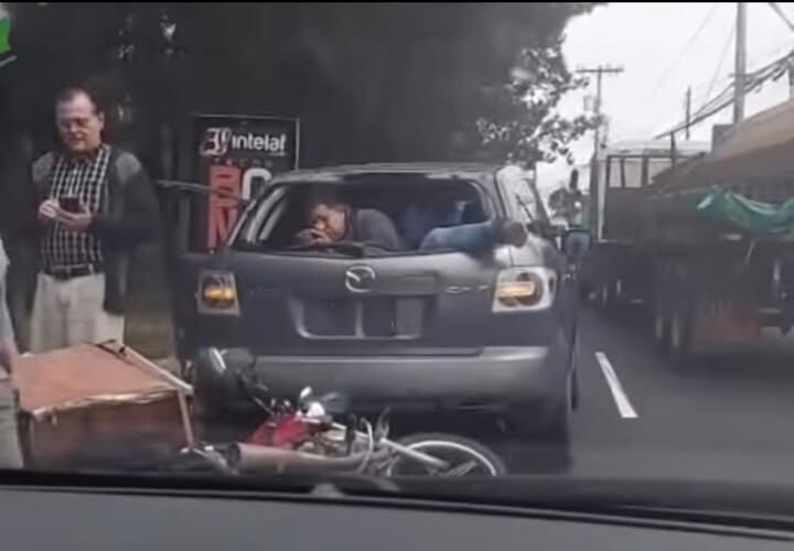 Según se confirmó por paramédicos que atendieron la emergencia, el hombre que se movilizaba en la motocicleta salió expulsado de esta, quebró el vidrio de atrás del carro y quedó dentro del baúl.
