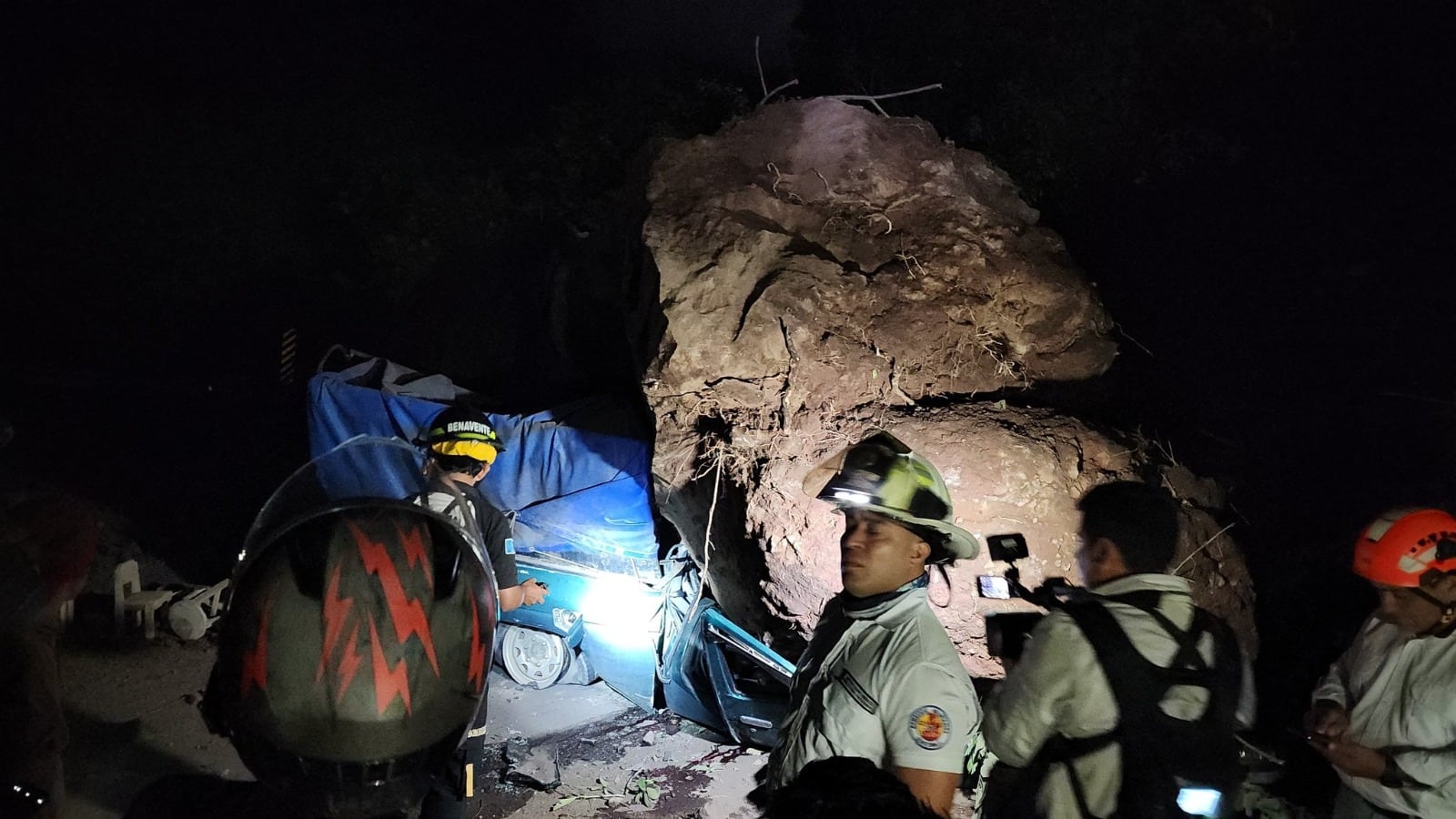 Según las autoridades, el incidente se suscitó cuando una roca de gran tamaño cayó sobre el vehículo en el que se transportaban.