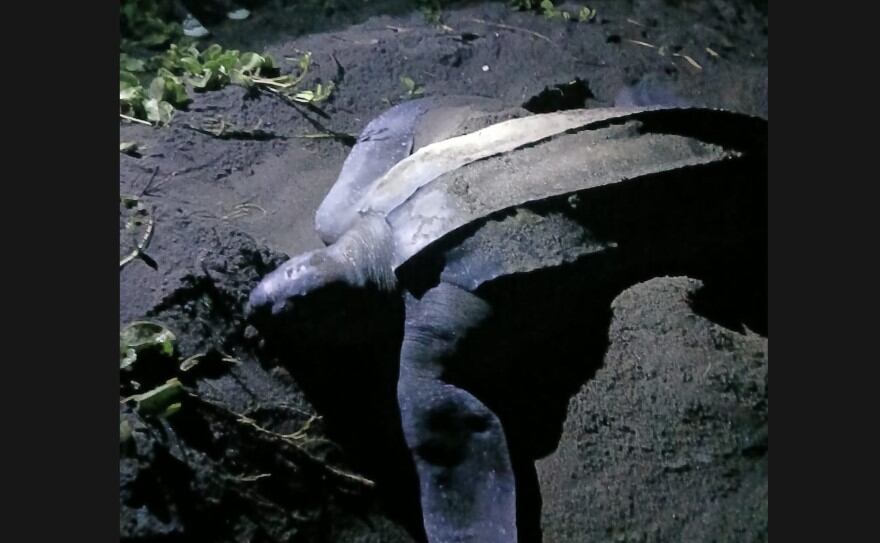 En un hecho poco común y de gran valor ecológico, una tortuga marina baule (Dermochelys coriacea) depositó sus huevos en la playa de la aldea El Garitón, en el municipio de Taxisco, Santa Rosa.