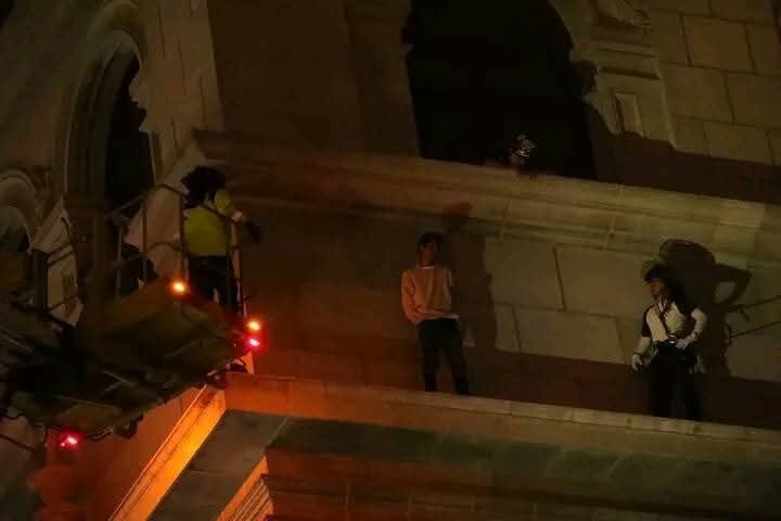 El individuo, cuya identidad no ha sido revelada, permaneció por varios minutos en la estructura, en aparente estado de alteración.