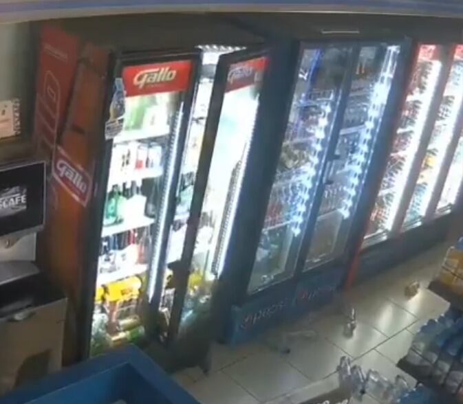 En el clip se logra observar como una encargada de tienda sale corriendo, mientras las refrigeradoras tras el fuerte movimiento se abren mientras las bebidas caen al piso.