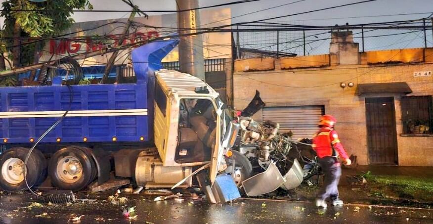 La mañana de este lunes se registró un accidente de tránsito en la calzada Raúl Aguilar Batres y 26 calle de la zona 12, donde un camión de volteo se empotró en un poste, generando fuertes complicaciones en la movilidad vehicular.