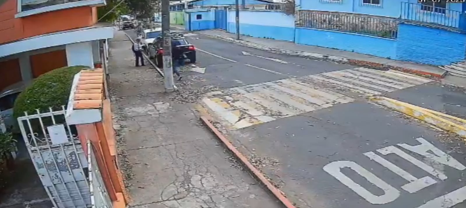 Una cámara de seguridad captó el momento exacto en que un hombre armado asaltó a una persona que recién salía de una vivienda en la colonia Centroamérica, zona 7 de la ciudad capital.