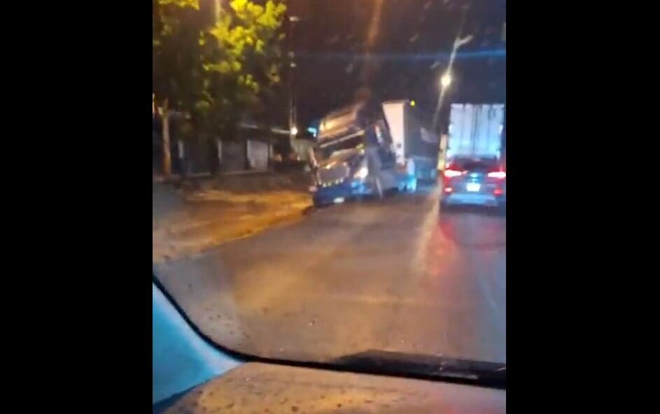 Un tráiler quedó atascado la mañana de este martes 5 de agosto en la Calle Martí y 12 avenida de la zona 6 capitalina, luego de que una de sus llantas cayera en uno de los carriles donde se realizan trabajos municipales.