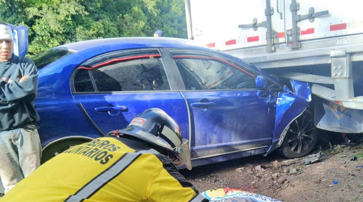 Un accidente se registró en el kilómetro 125.5 de la Ruta Interamericana, jurisdicción de Sololá, cuando un automóvil colisionó contra un vehículo pesado que permanecía estacionado en el lugar.