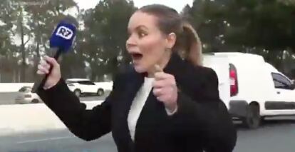 El robo sorprendió completamente a la reportera. Testigos y cámaras de otro colega, Rafael Ferraz, captaron el momento exacto en que el ladrón huye en bicicleta con el celular en la mano, dejando visible la reacción de asombro de Casadei.
