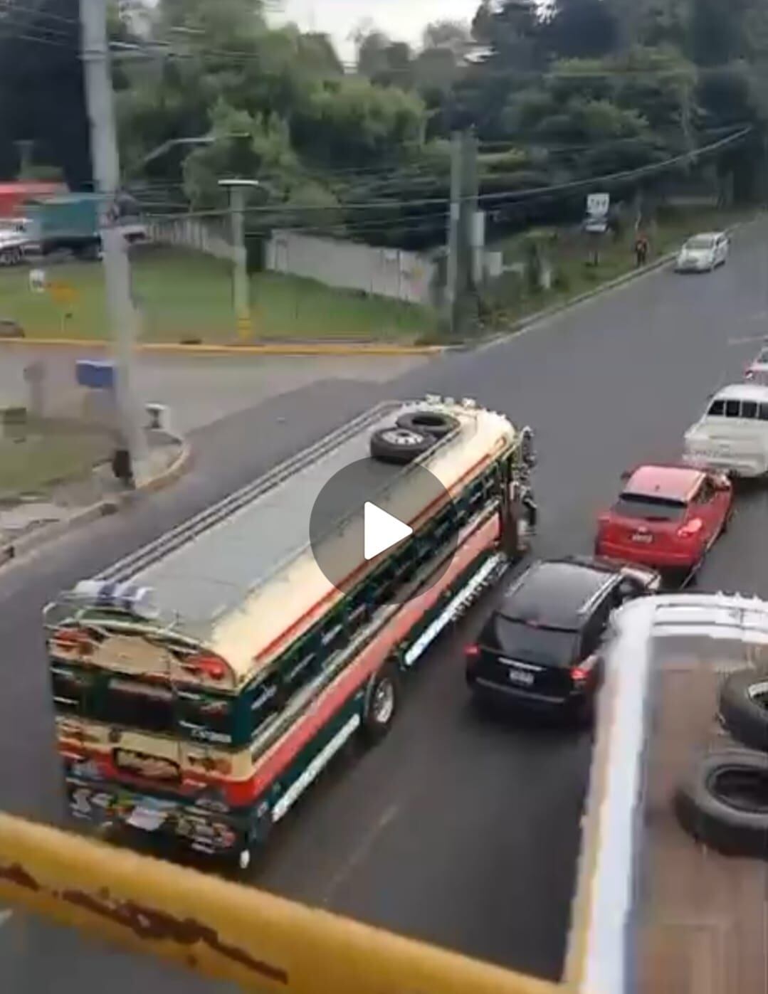Este viernes vecinos de Santa Catarina Pinula compartieron este video, de una unidad del transporte extraurbano, que fue captada cuando circulaba a alta velocidad y en contra de la vía.