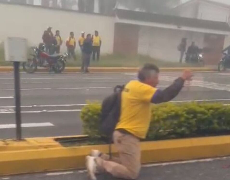 Según se observó en las imágenes, el hombre que se acercó a realizar la oración portaba un uniforme amarillo, al igual que las víctimas y otro grupo de personas que llegaron a la escena.