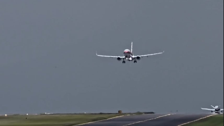 En redes sociales circula un video que muestra el momento exacto en que un avión procedente de Miami, Estados Unidos, realizó un aterrizaje de emergencia en el Aeropuerto Internacional La Aurora.