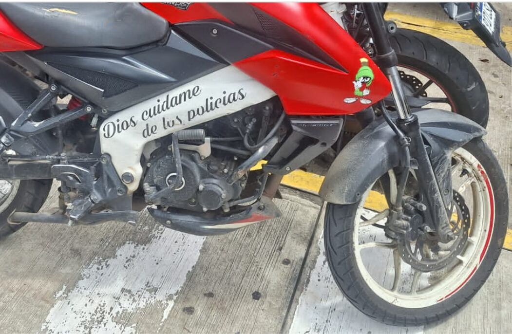 La motocicleta portaba el letrero: “Dios, cuídame de los policías”.