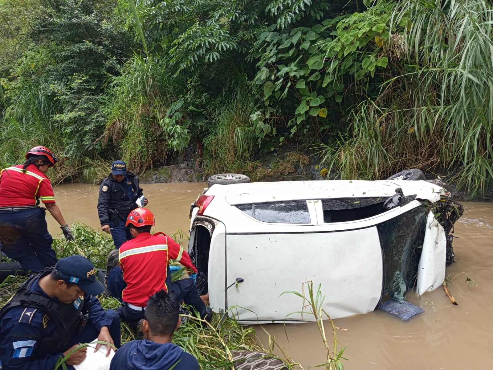 MIRA LA NOTICIA: Taxi con varios pasajeros cae a barranco en zona 25 este jueves