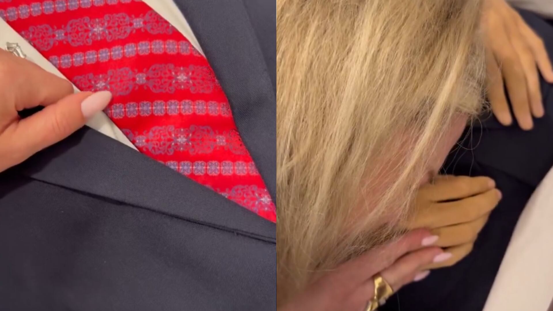 En las imágenes se observa a Erika tocando el pecho de su esposo acostado en el ataúd, que está vestido con traje y corbata, mientras le dice que lo ama.