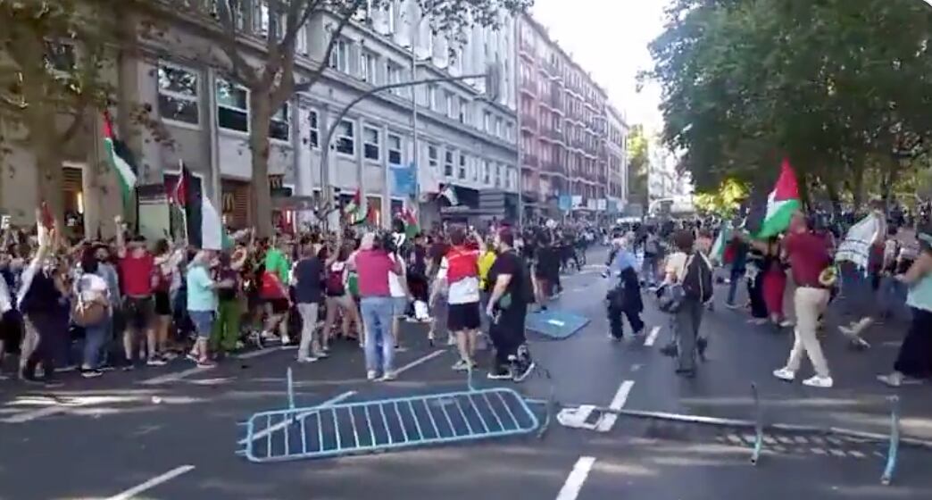Incluso, en las grabaciones se observa cómo personal de seguridad interviene y golpea a los propalestinos para controlar los disturbios que tuvieron lugar a la altura de Atocha, Cibeles y Gran Vía en Madrid.