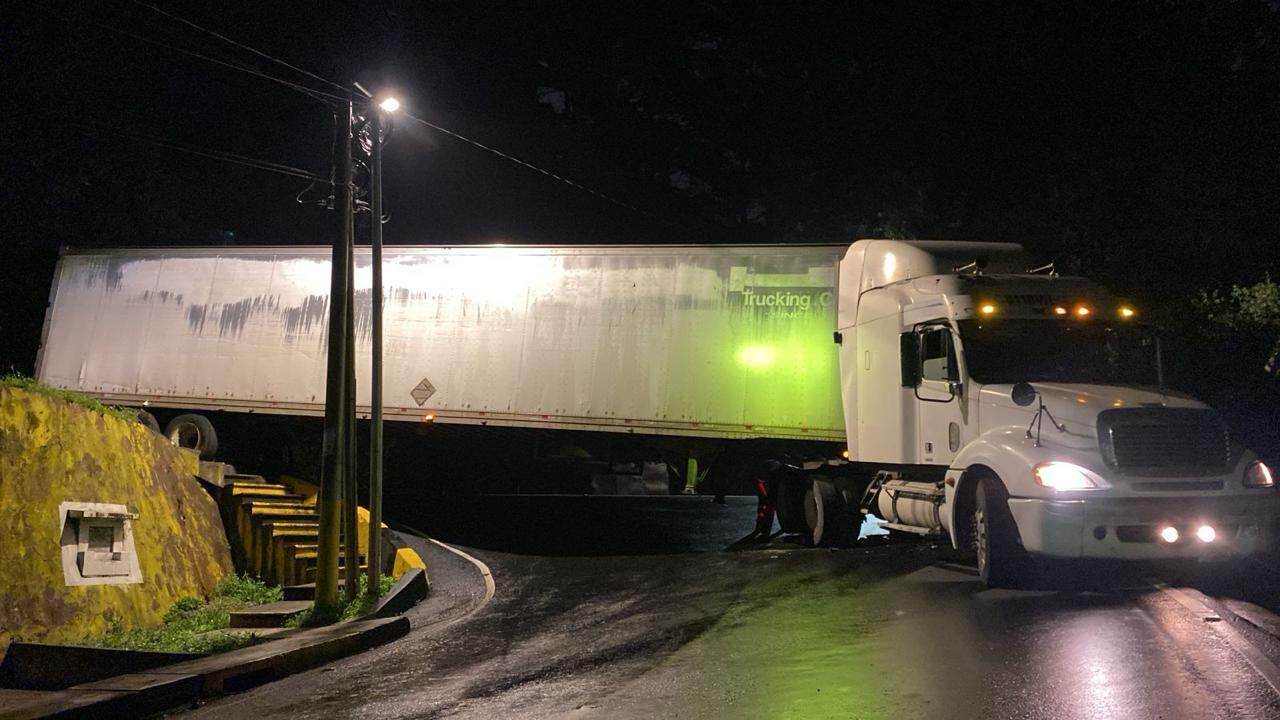 Esta madrugada de viernes 19 de septiembre, un tráiler se quedó atorado en la salida del Santa Catarina Pinula, entre San Remo por El Pueblito, indicó el alcalde Sebastián Siero.