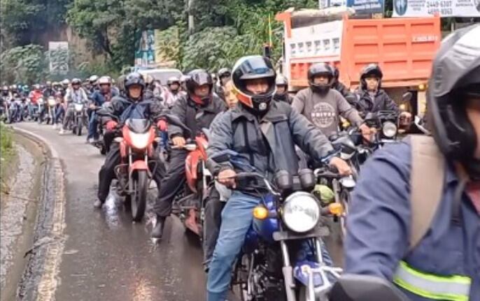 En videos compartidos en redes sociales se observa cómo decenas de motocicletas avanzan lentamente por el sector, tras permanecer varados durante el cierre total ocasionado por la caída de un árbol y cables de energía que obstruyeron los tres carriles en ambos sentidos.