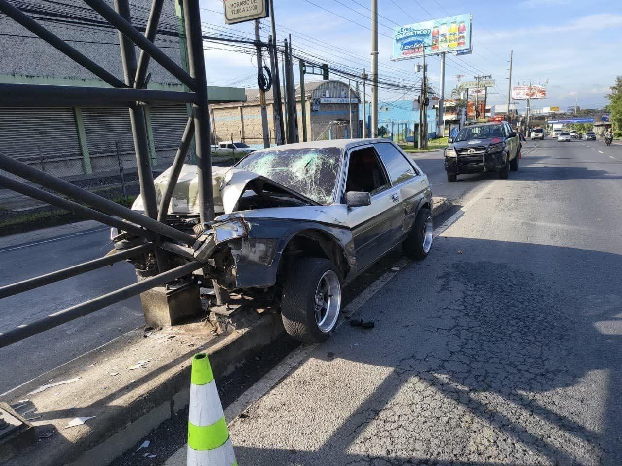 El conductor perdió el control y colisionó fuertemente contra una estructura de metal que sostiene señales de tránsito. Lo que provocó que su acompañante muriera de inmediato.