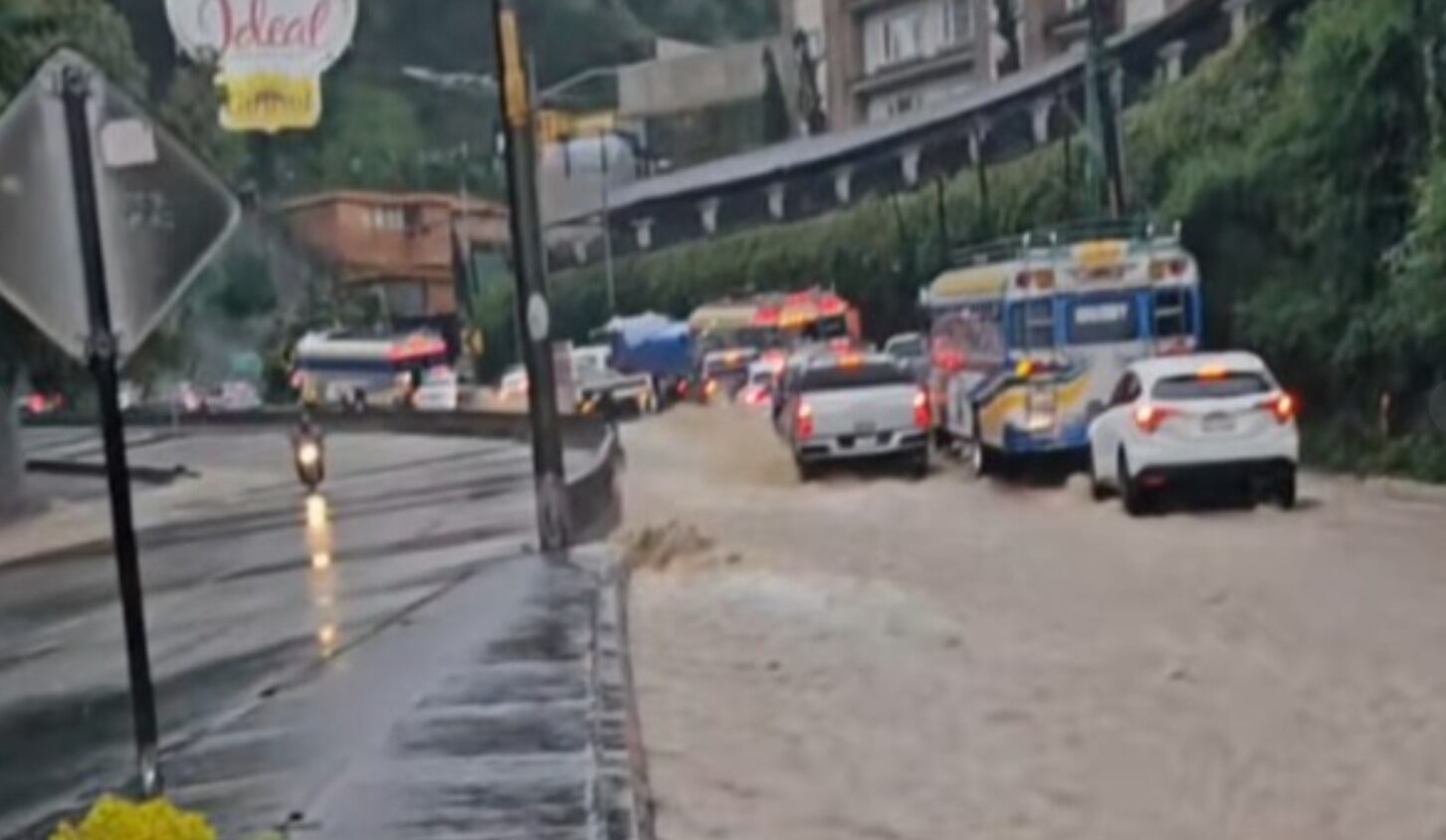 Un motorista que fue arrastrado por la fuerte corriente de agua en la Carretera a El Salvador grabó y compartió el momento posterior al incidente.