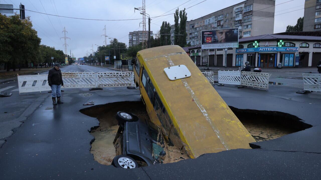 Un autobús cayó este martes en un socavón que se abrió repentinamente en una calle de la ciudad ucraniana de Odesa, como consecuencia de fuertes lluvias que afectaron la zona. Junto al autobús, un automóvil también quedó atrapado en el enorme hoyo, que se encontraba parcialmente inundado.
