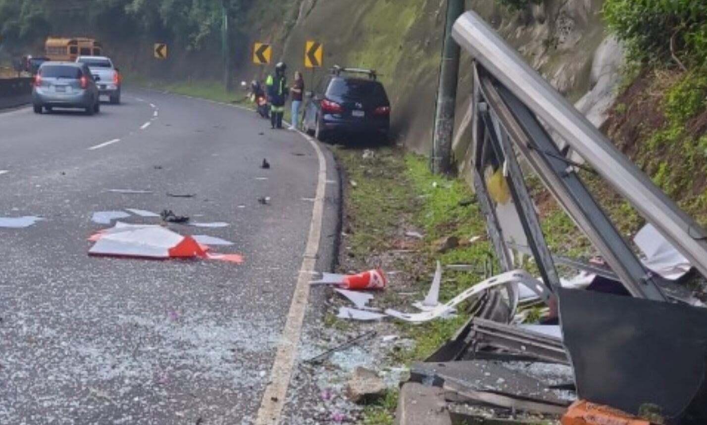 En una fotografía compartida por las autoridades de tránsito se pudo observar que el automóvil destruyó parte de la estructura metálica y algunas piezas quedaron esparcidas en los carriles.