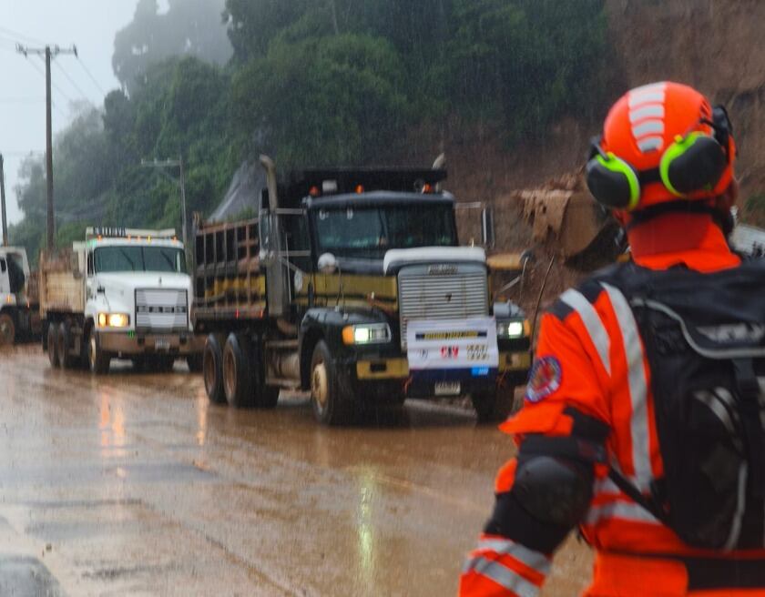 La presencia de lluvia en Carretera a El Salvador en esta tarde de lunes 6 de octubre ha complicado las labores en el kilómetro 24 por el derrumbe ocurrido en horas de la madrugada.