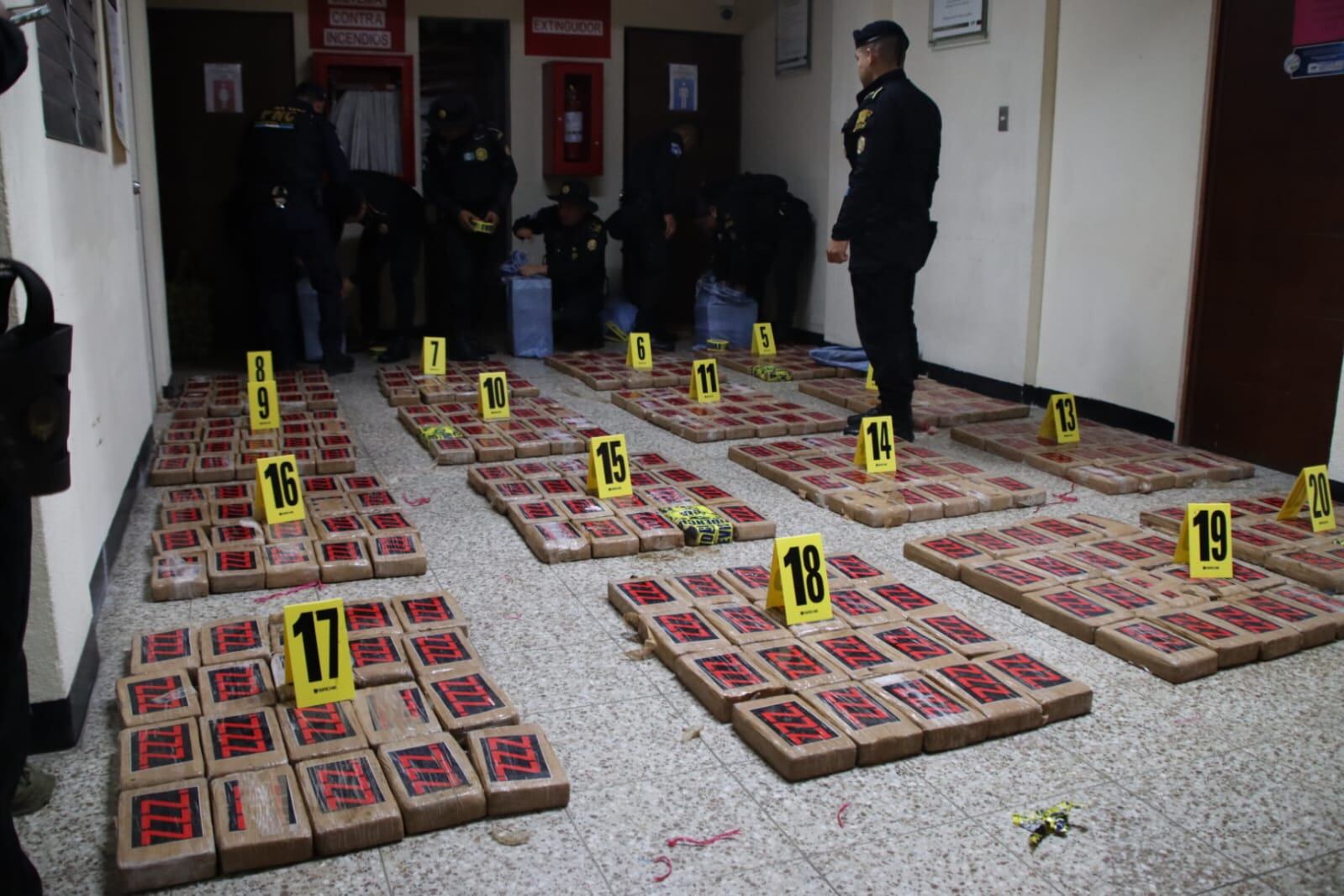 Además, en el interior de un recipiente fueron hallados 393 paquetes rectangulares. Las pruebas de campo realizadas por SGAIA-PNC arrojaron presuntivo positivo para cocaína.