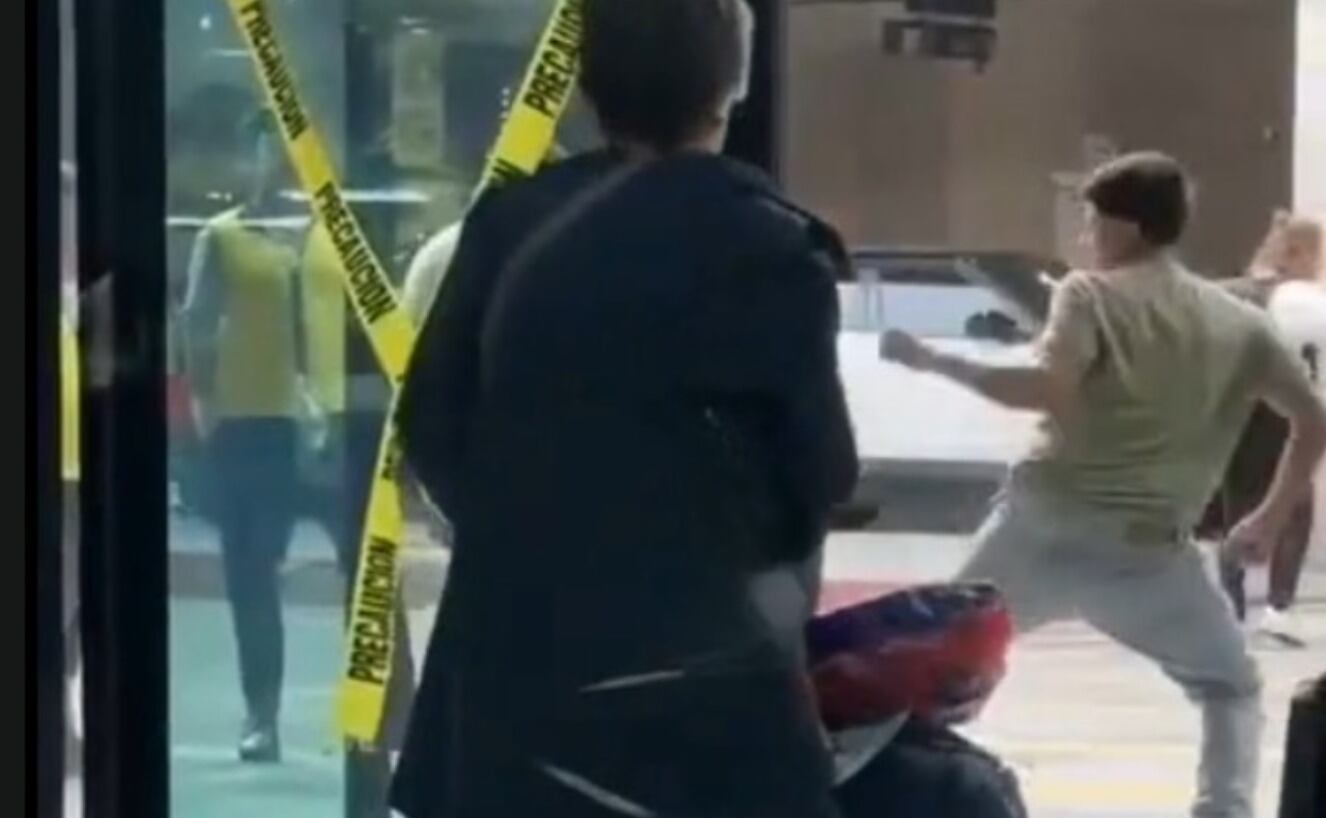 En las imágenes se observa a dos hombres, aparentemente jóvenes, que se van a los golpes en el área de salidas de viajeros.