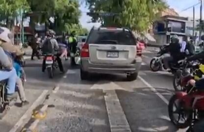 El hecho ocurrió en la 7.ª avenida y 12 calle de la zona 9, donde se observa a una agente de tránsito dando indicaciones a la conductora, quien estaba sobre un paso peatonal.