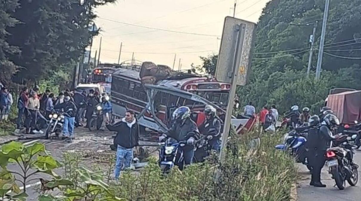 Autoridades de tránsito y la Policía Nacional Civil se presentaron al lugar para coordinar el retiro del bus accidentado e iniciar las investigaciones.