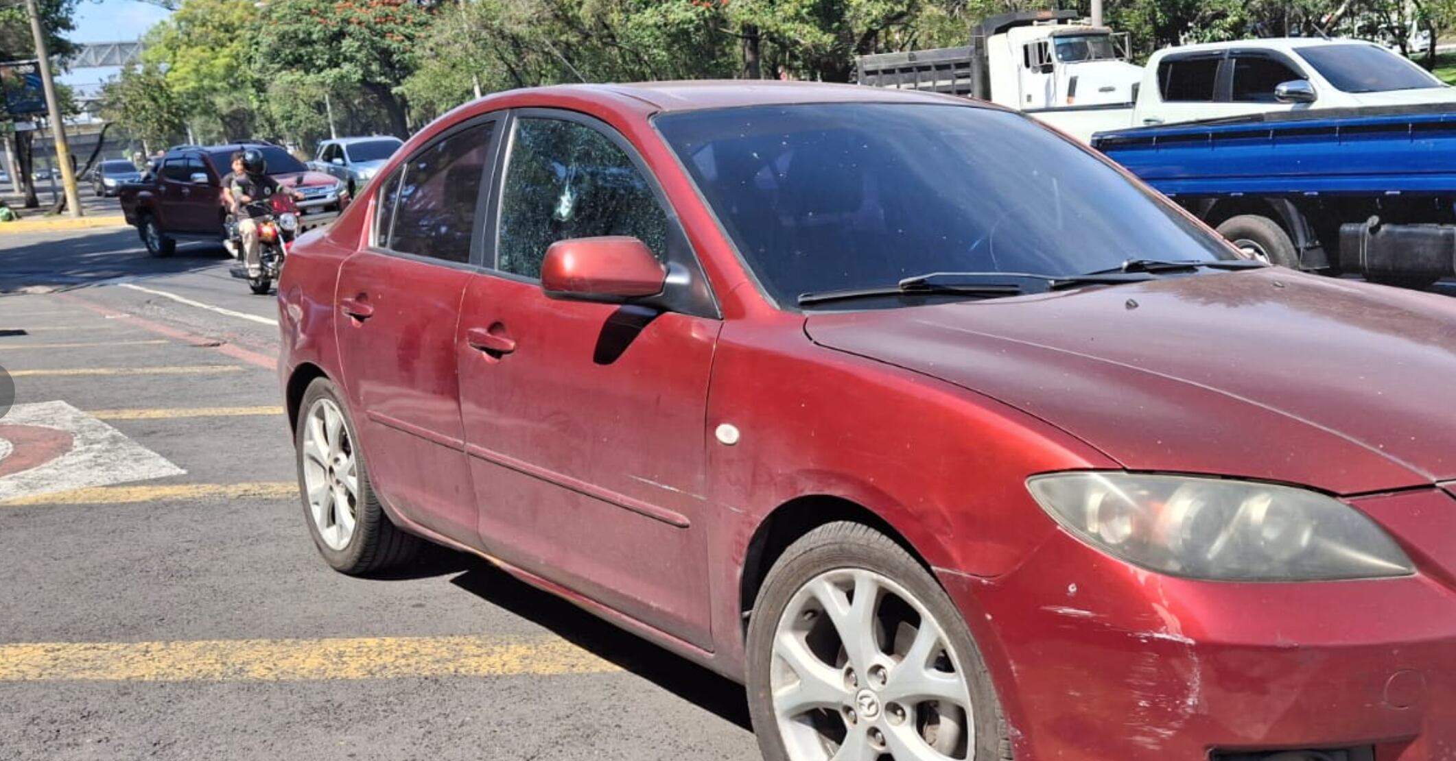 Según el reporte, el automóvil fue emboscado bajo los puentes gemelos de El Trébol, donde recibió varios disparos. El piloto logró conducir hasta la estación bomberil para resguardarse y solicitar apoyo.