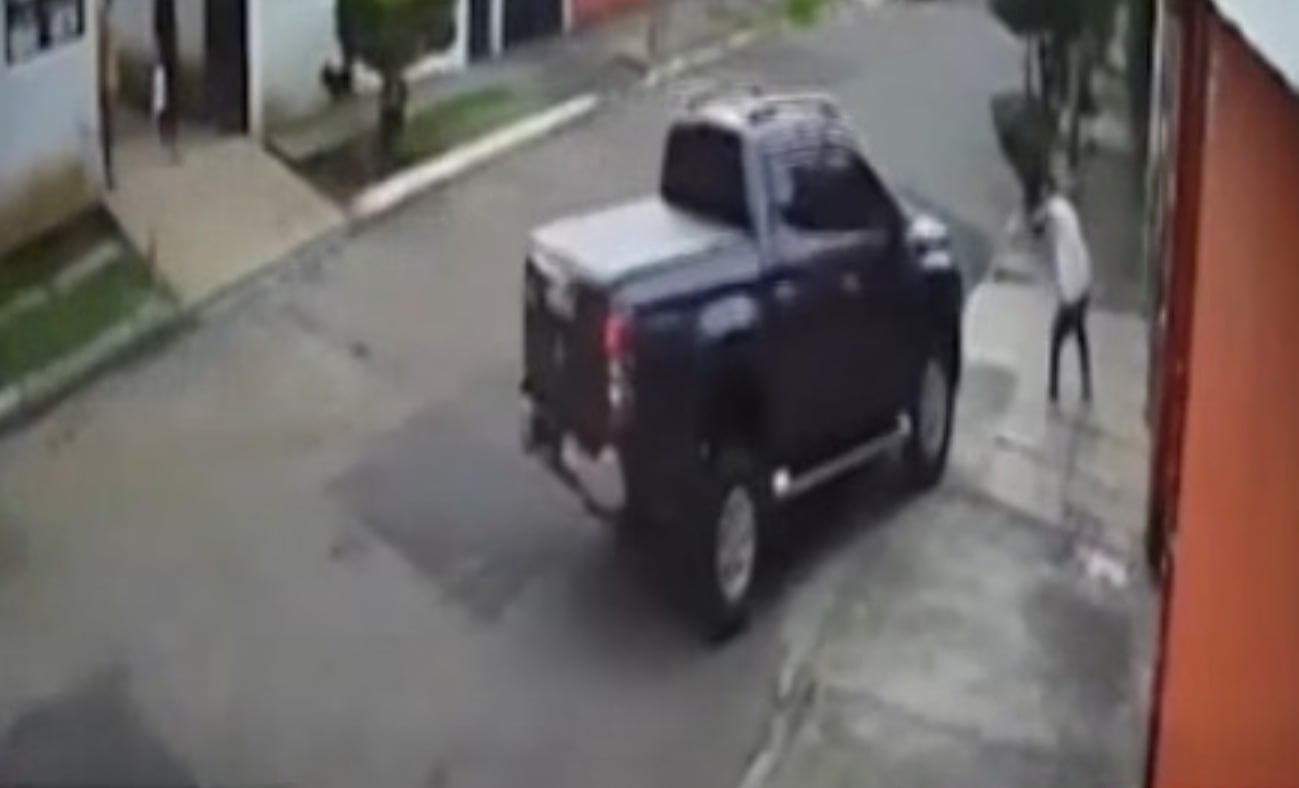En el video, compartido también por Noti7, se observó cuando el empleado persiguió a uno de los presuntos secuestradores, lo acorrala con su vehículo y el individuo continúa la fuga corriendo.