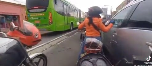 De acuerdo con las imágenes, el vehículo se cambia de carril repentinamente a punto de provocar un accidente con otros dos motoristas.