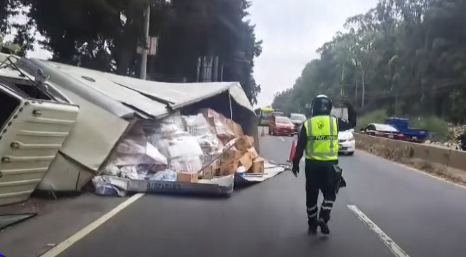 Hasta el momento, agentes de la PMT se encuentran en el punto agilizando la movilidad. El hecho involucra a un camión de mercadería que por razones que se desconocen volcó en el lugar y obstaculizó una de las vías.