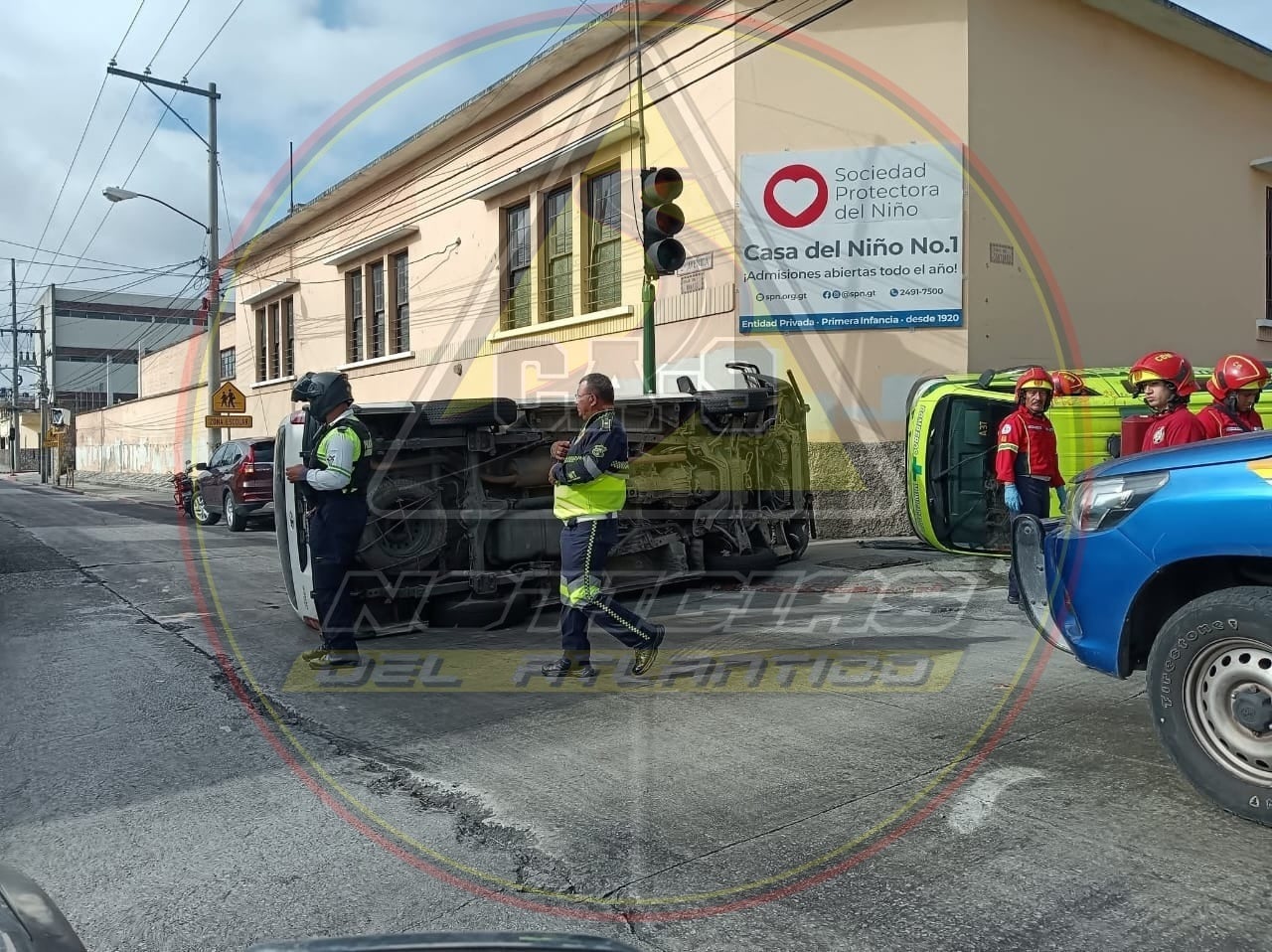 Dos elementos de los Bomberos Municipales resultaron heridos luego de que el vehículo en el que se desplazaban para atender una emergencia fuera impactado por otro automóvil en la 2ª avenida y 8ª calle de la zona 1.