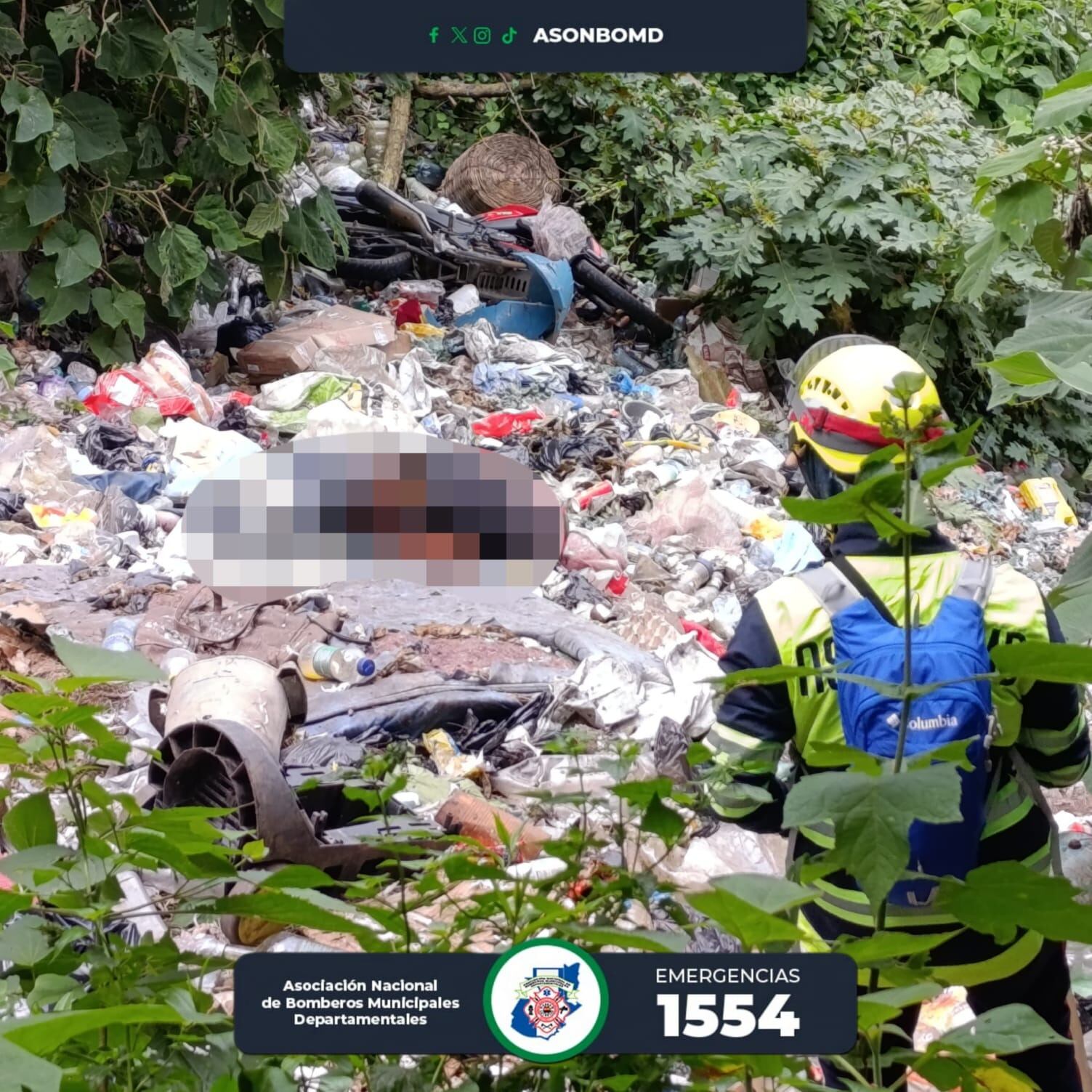 El cuerpo de Bomberos Departamentales informó que fue localizado el cadáver de un motorista en estado de descomposición en el fondo de un barranco de aproximadamente 40 metros de profundidad en el Cantón Río Camanibal, Chichicastenango, Quiché.