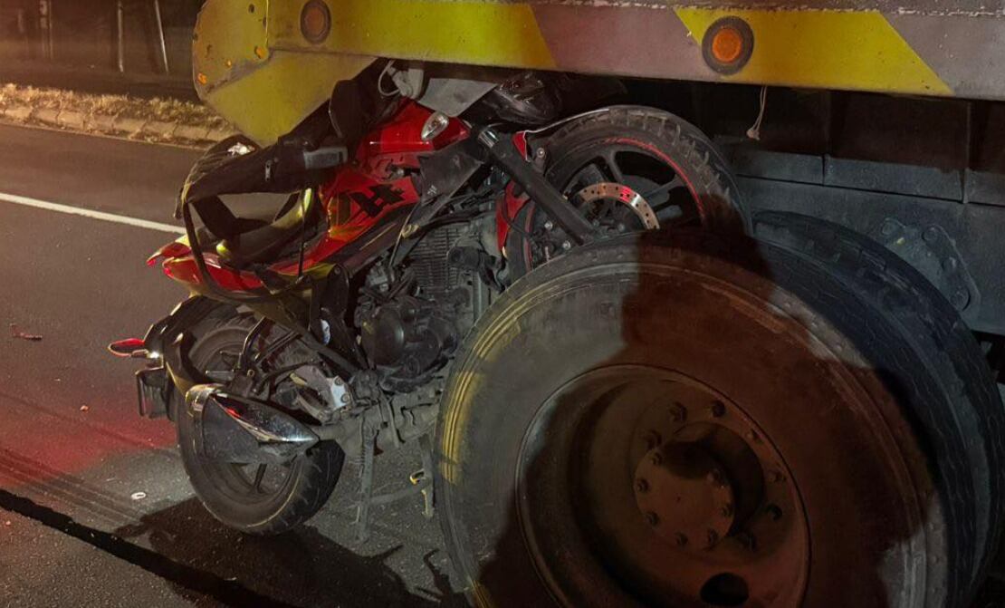 En una fotografía compartida por la Policía Municipal de Tránsito (PMT) de Villa Nueva, se pudo observar que la motocicleta en la que se movilizaba el fallecido quedó incrustada en los neumáticos del camión.