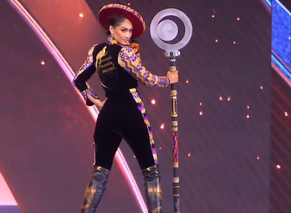 Durante la presentación de Trajes Nacionales, la representante de Guatemala, Raschel Alexandra Paz Archila, mostró el diseño seleccionado para esta etapa del certamen.