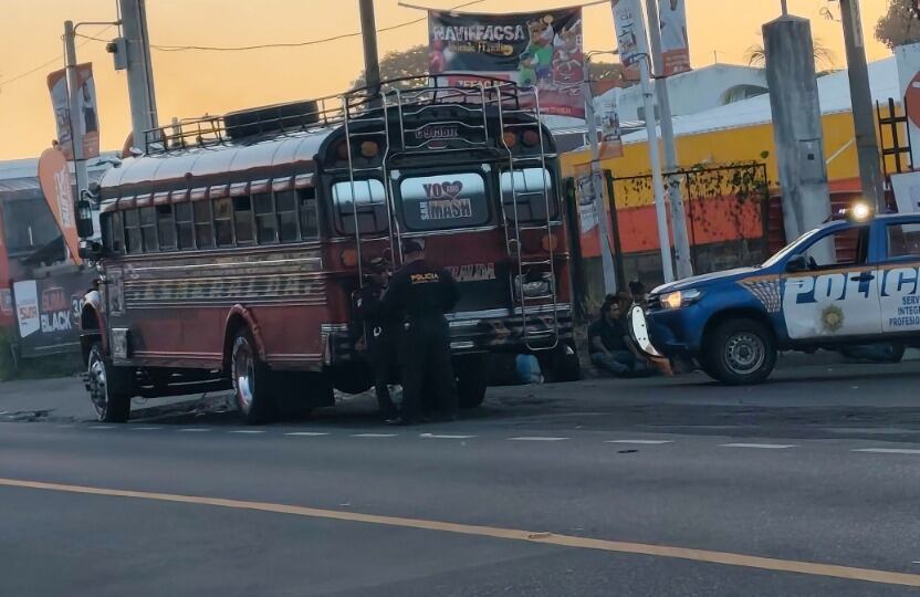 La víctima no ha sido identificada. El autobús quedó varado en el kilómetro 88.5 de la ruta al Pacífico, salida de la terminal de buses de Santa Lucía Cotzumalguapa, Escuintla.