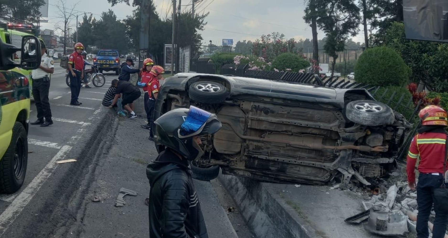Un accidente de tránsito en la calzada Aguilar Batres dejó a un conductor y sus acompañantes con lesiones luego de que el vehículo volcara sobre la vía.