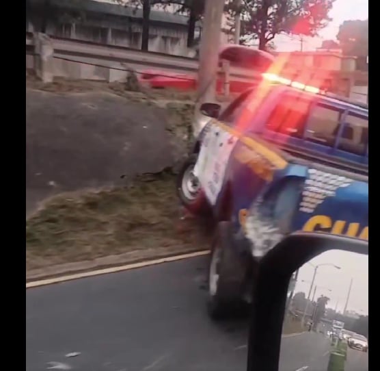 La situación se complicó cuando una patrulla de la Policía Nacional Civil (PNC), que se encontraba dando seguimiento a posibles indicios de un taxi pirata, fue impactada por otro vehículo, provocando un segundo accidente en el mismo lugar.