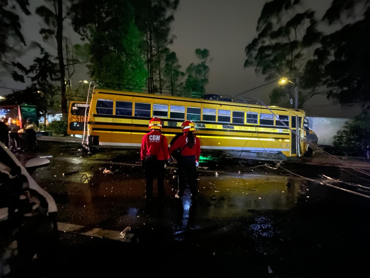 Según información proporcionada por los Bomberos Municipales, en el kilómetro 15.5 de la carretera a El Salvador se reportó una colisión múltiple que involucró a un vehículo de transporte pesado, un autobús y un vehículo particular.
