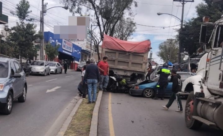 Un camión de volteo se desconectó mientras circulaba frente al mercado San Rafael, en la zona 18, y terminó impactando a un vehículo y una motocicleta. El incidente generó alarma entre peatones y comerciantes del sector.