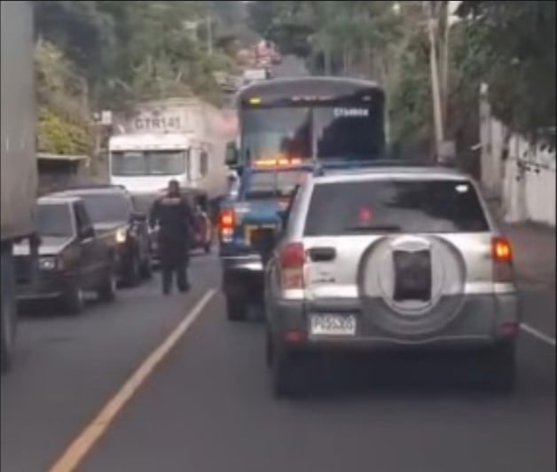 Agentes de la Policía Nacional Civil (PNC) intervinieron un bus tipo pullman que transitaba en contra de la vía sobre la Ruta CA-2 Occidente, a la altura de la aldea El Xab, en el departamento de Retalhuleu.