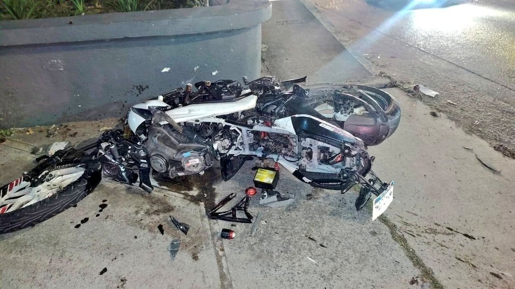 En el lugar se observó que la motocicleta quedó destruida tras la fuerte colisión con el automóvil.