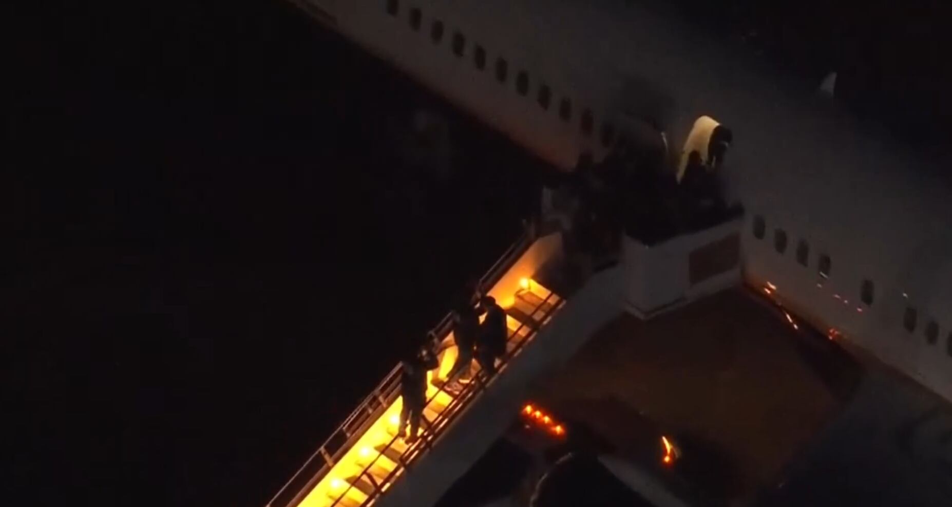 Son las 5:23 y es enero, ya anocheció en Nueva York, pero a quien ustedes ven bajando la escalerilla del avión es a Maduro y a su esposa. Los dos requieren ayuda porque están encandenados. Que es la forma en la que los acusados de crímenes graves son transportados aquí en EEUU. pic.twitter.com/7ueCTINuoO