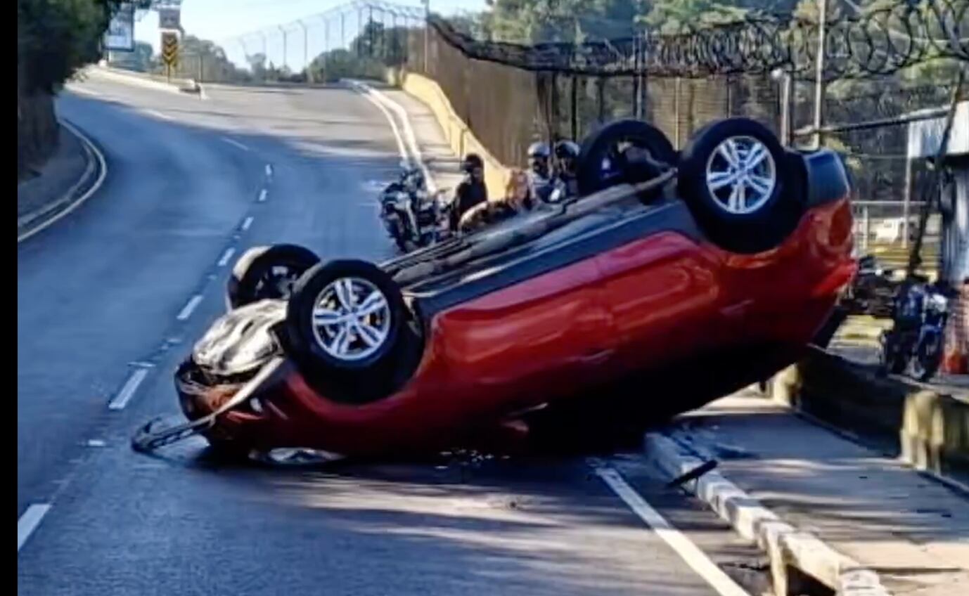 Por causas que aún se desconocen, un vehículo volcó en las cercanías del ingreso a la Universidad Rafael Landívar, informó Amílcar Montejo, gerente de Comunicación de Emetra.
